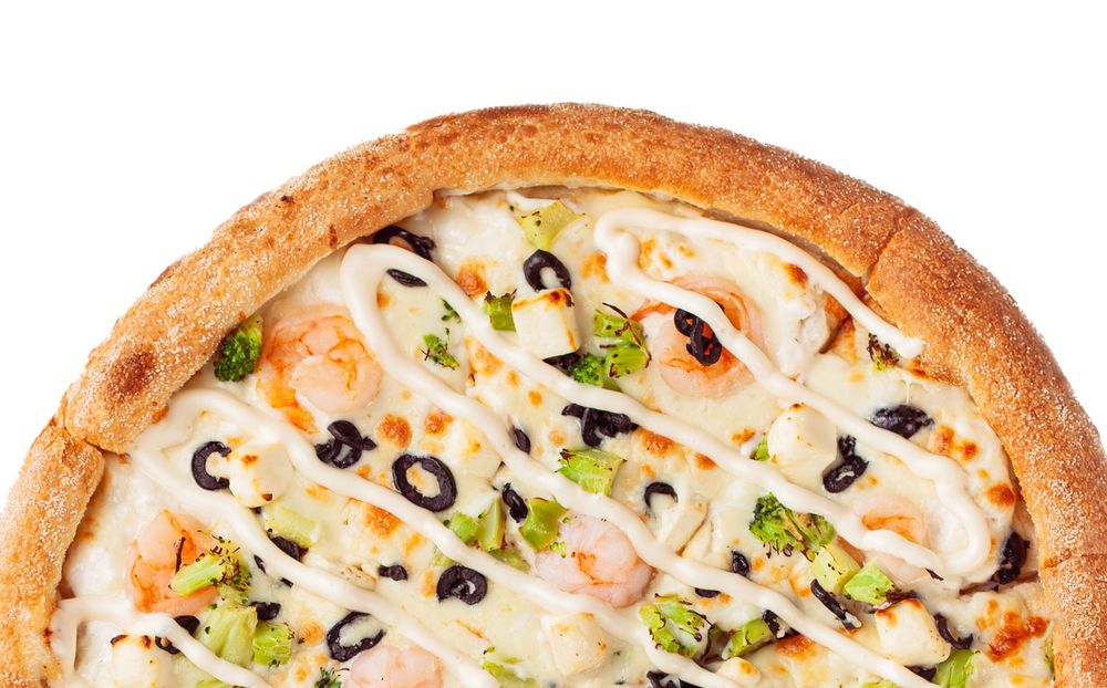 Соус Ранч, сыр моцарелла,креветки, маслины, брокколи, сыр фета