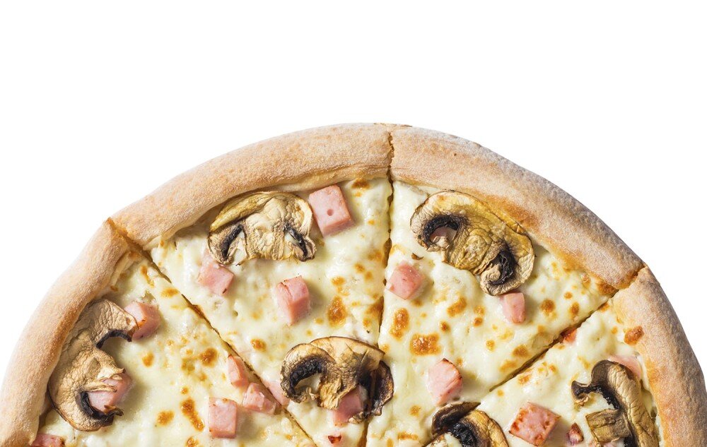 Чесночный соус ранч, увеличенная порция моцареллы, двойная порция ветчины из цыпленка, свежие шампиньоны